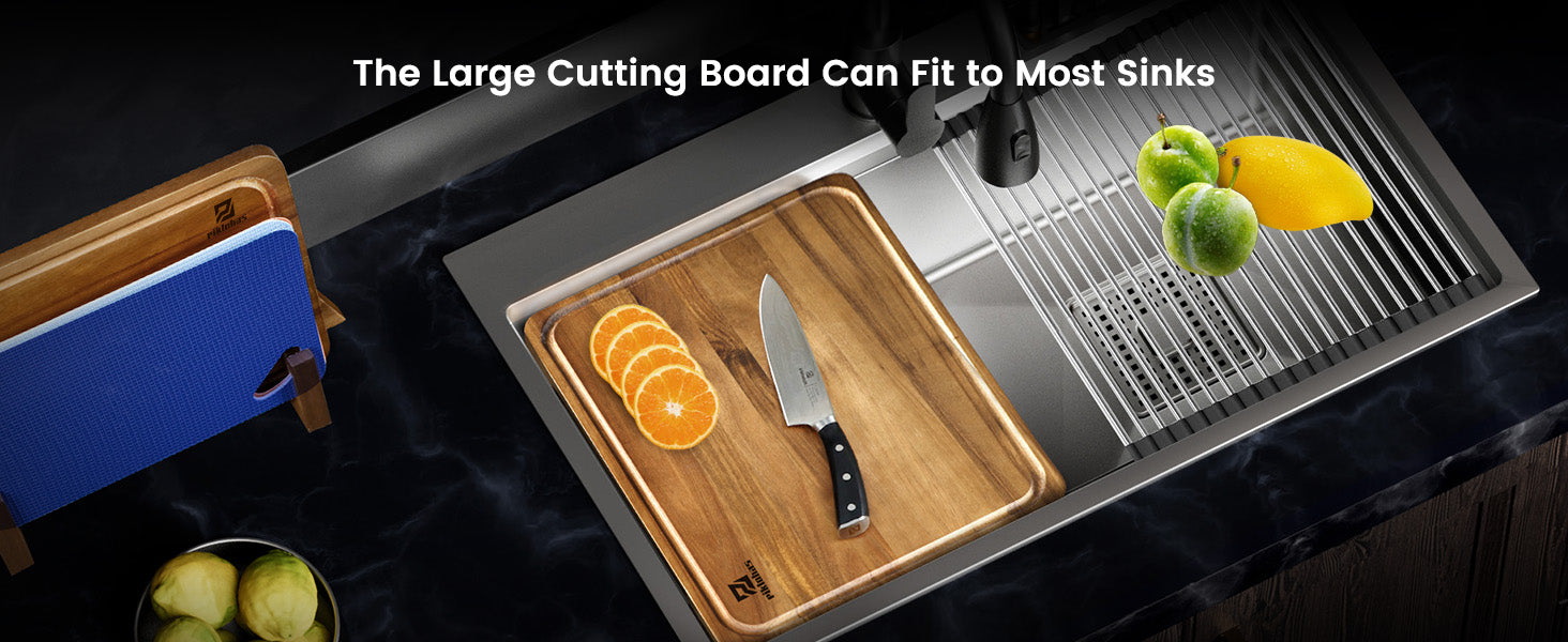 It fits perfectly over your sink for cutting fruits, vegetables, and meat.