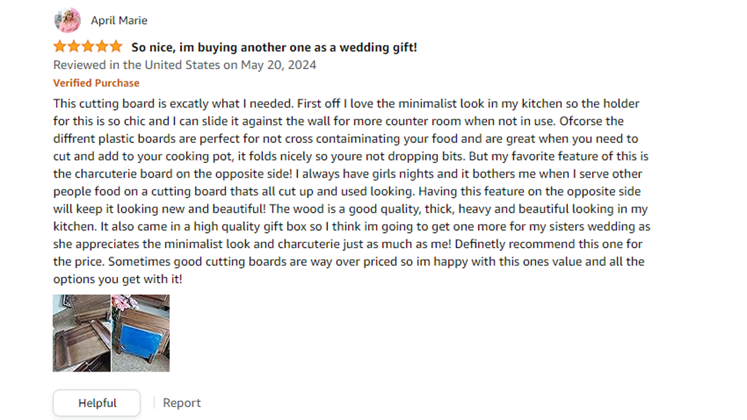 This distinctive butcher block style set of cutting boards complements any kitchen and makes a great gift idea for Housewarming, Weddings, Christmas, Birthdays, Thanksgiving, anniversaries etc.